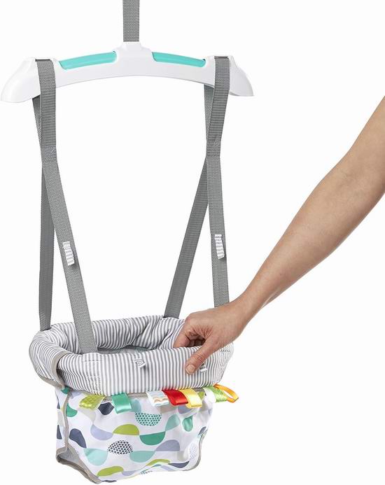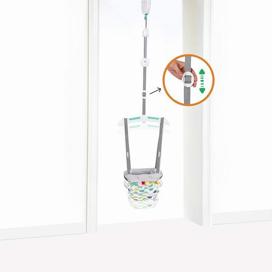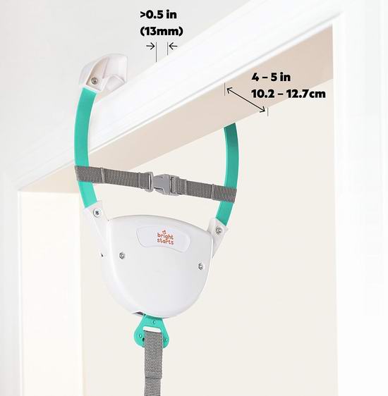 这款门框跳跳椅,来自排名第一的活动跳跳椅制造商,小巧易收纳,无需工具即可牢固地安装在大多数门框上(墙体厚度必须在 4-5 英寸之间,装饰条厚度至少为0.5英寸)。适合宝宝能够独立坐稳时(大约6个月大),体重必须低于26磅。