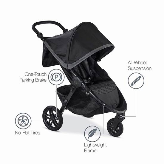 这款婴儿推车适合宝宝成长不同时期(新生儿至55磅),采用Click & Go简易适配器系统,铝合金超轻框架,非常轻巧便携,全地形橡胶轮胎,推行时非常平稳,单手可快速折叠,配备7个收纳袋,底部还有一个超大容量储物篮。