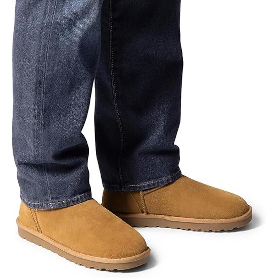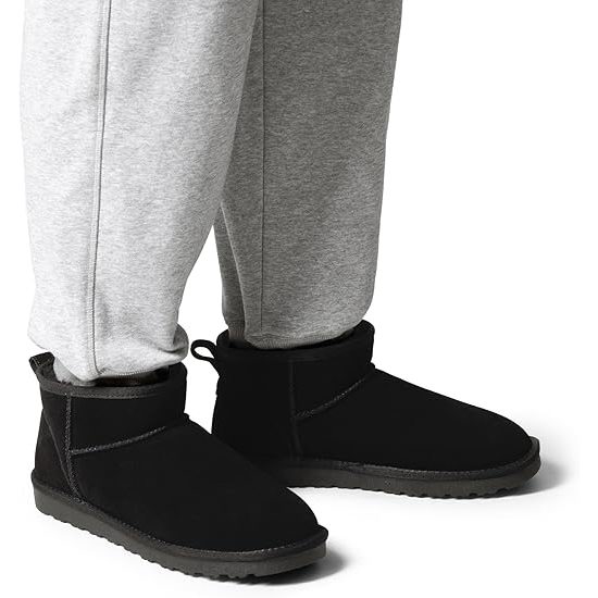 采用绒面革鞋面,17毫米毛绒衬里和人造毛皮覆盖的 EVA 鞋垫使这些雪地靴具有天鹅绒般的触感,同时防止水分积聚,带来干爽舒适的感觉。采用耐用的TPR外底,在光滑或不平整的路面上提供稳固的支撑和可靠的抓地力。