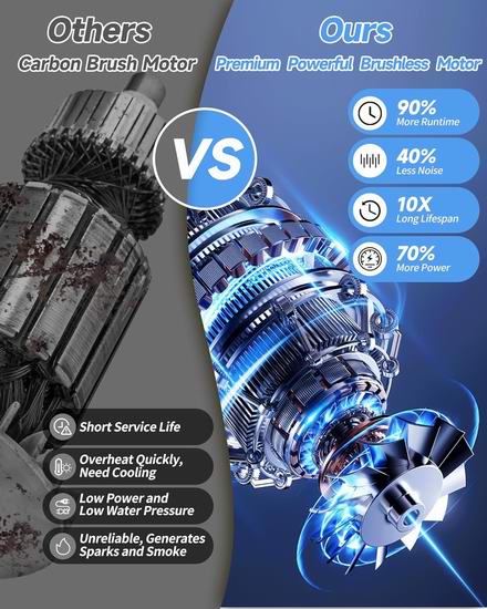 这款无绳吹扫机采用先进的涡轮增压技术,搭载高性能无刷电机,风速高达 280 英里/小时,最大风量达 650 CFM。在暴风模式下,可以轻松吹走潮湿的落叶、积雪、沙子、碎石,甚至工业垃圾。配备两块4.5Ah高容量锂离子电池,低速模式下续航时间长达120分钟,高速模式下续航时间长达30分钟。电池内置多重安全保护,并且支持无缝电池更换。具有6档可调节风速,低档风速适合室内除尘和清除宠物毛发;中档风速适用于露台和干燥的草坪落叶;强劲模式则专为湿树叶、积雪和花园杂物而设计。