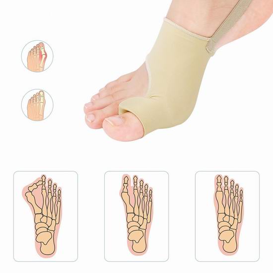 这款拇趾外翻矫正器采用人体工程学设计,通过轻柔地矫正脚趾并减轻关节压力,可立即缓解拇趾外翻疼痛,并减少摩擦和缓冲压力,降低拇趾外翻发展或恶化的风险,并促进足部长期健康,让您每一步都体验舒适轻松。