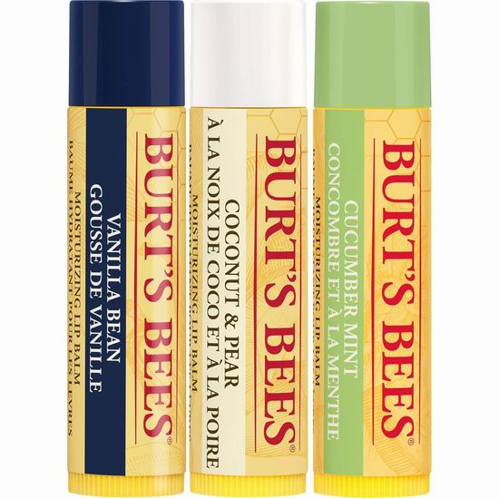 Burt's Bees 小蜜蜂100%纯天然保湿润唇膏3支装 9.49加元(原价 12.49加元)