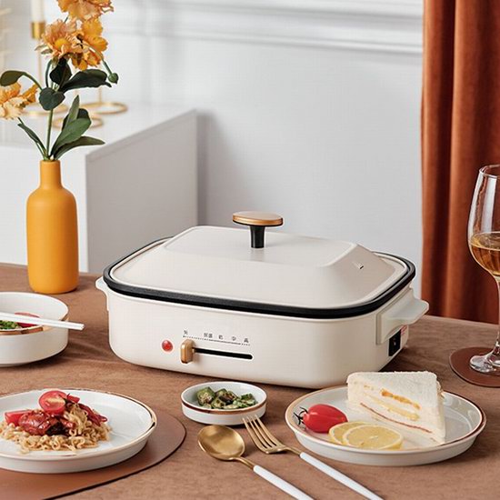 这款多功能锅,煎烤蒸煮焖炒,一锅搞定,配备煎烤盘和深煮锅双内胆,三挡火力调节,控温更灵活,比炉灶烹饪更快,聚餐家用必备。不仅可以炖汤,涮火锅、羊蝎子锅和麻辣烫锅,还可以煎饺子,煎牛排、油炸、炒菜,开心的时候来个韩式五花肉烧烤趴也是赞赞哒。锅体采用不粘涂层内胆,易于清洁。温度最高可达250°C(480°F),不懂厨艺也能轻松控制温度了,贴心保温功能,随时享受美味。配备钢化玻璃盖,可直接目睹烹饪过程。分体式设计,可拆卸,易于清洗。