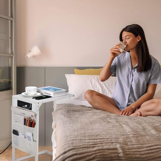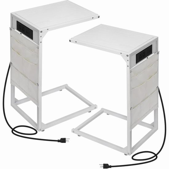 白菜价!历史新低!OYEAL 带充电站+插座 C形边桌/床头柜2件套3.8折 45.98-46.98加元包邮!单价仅22.99加元!2色可选!