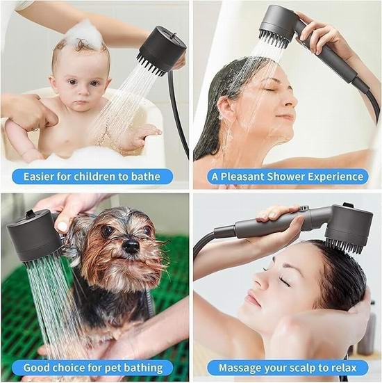 这款淋浴头采用升级的高密度滤芯,能更有效地去除氯、氟、重金属和沉淀物,平衡水的pH值,软化后的水质令您的肌肤更柔嫩,秀发更顺滑,并为肌肤注入有益矿物质。采用微喷嘴技术,使出水孔更小更密集,从而提高水流速度,水压提升高达260%,节水高达35%,远胜普通手持花洒。拥有多种喷淋模式,包括雨淋模式、按摩模式和混合模式,满足各种淋浴需求。喷头设有柔软的硅胶刷头,柔韧性极佳,可轻松滑过发丝,避免缠结或拉扯,按摩头皮,缓解瘙痒,促进血液循环,舒缓压力。它能有效去除头皮屑和堆积物,并将护发产品深入渗透,令秀发洁净清爽,焕活头皮。拧下花洒头后,即可获得强劲的手持喷淋器,方便冲洗和清洁。