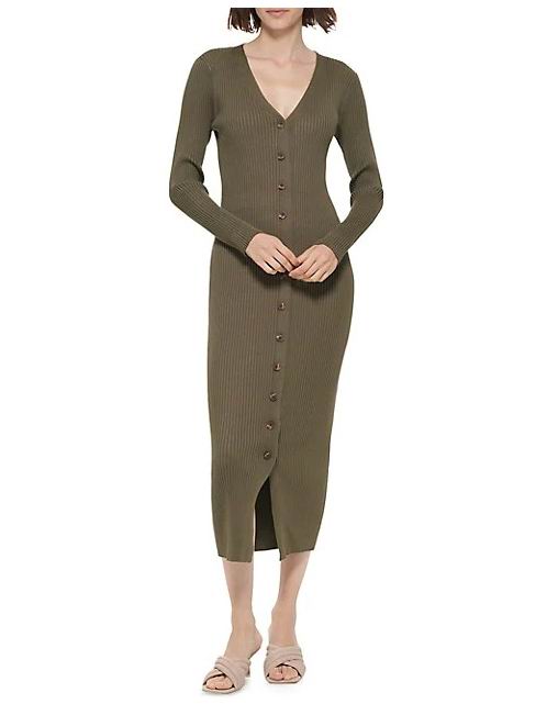 CK 前纽扣罗纹中长连衣裙68.39加元(原价 179加元)