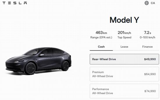 特斯拉 Model Y 后驱标准版目前在加拿大售价49,990加元,刚好卡在联邦新政“5万加元价格上限”之下,且该车型由德国柏林工厂生产,欧盟与加拿大存在 CETA 自贸协定,完全符合“产自自贸协定国家”的要求,因此从硬性条件上看是满足“EV 可负担计划”购车补贴资格的。