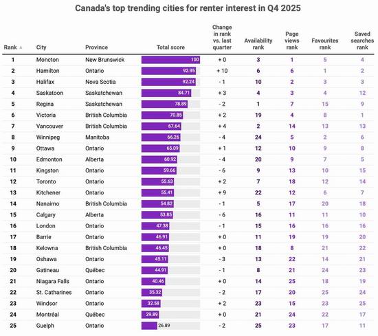 数据显示,在2025年第四季度,汉密尔顿在全国租房市场的关注度排名中一口气上升了10位,跃居第二名!
