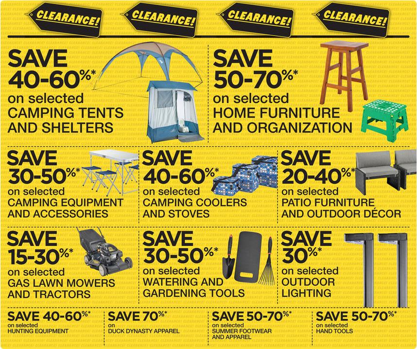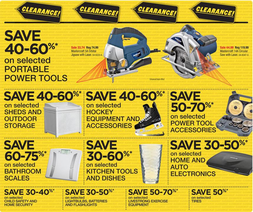 Canadian Tire店内销售,指定帐篷4-6折,野营餐桌等装备5-7折,保温箱及室外炉灶4-6折,后院家具6-8折,室内家具3-5折,割草机7-8.5折,花园工具5-7折,室外灯具7折,打猎装备4-6折,电力工具4-6折,后院储存箱4-6折,滑冰鞋等冰球装备4-6折,体重计2.5-4折,厨具餐具4-7折,电器5-7折,具体详情点击图片或查看本周宣传单。本周五开始打折,可在线下单,店内取货以确保买到中意的产品。