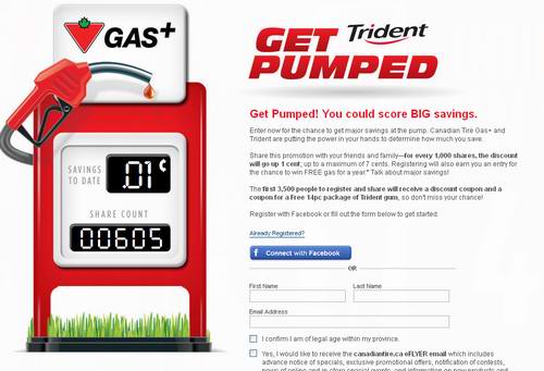 Canadian Tire Get Pumped Promotion加油打折券及免费Trident 14pc口香糖