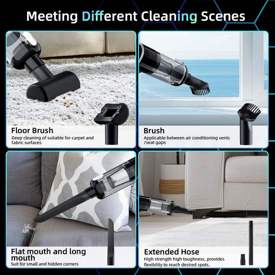 这款手持吸尘器,配备强劲的电机和升级的风扇叶片,可提供高达9000PA的吸力,能快速清除汽车、家居和办公室中的各种污垢、宠物毛发、泥土、灰尘、食物残渣或碎屑等。符合人体工程学的设计,握感舒适,操作简便。拥有0.26L大容量集尘盒,一键清空。内置锂电池,充满电后最长可续航30分钟。