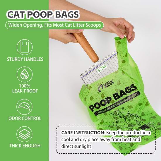 这款垃圾袋主要由玉米淀粉制成,很容易分解,有助于减少塑料垃圾,促进资源回收利用。带提手的垃圾袋让您更方便、更卫生地收集和携带宠物粪便和猫砂。采用20微米厚的材质,密封性更佳。具有良好的防漏性能和承重能力,不易撕裂,确保使用过程既卫生又方便。尺寸为40 x 20厘米。