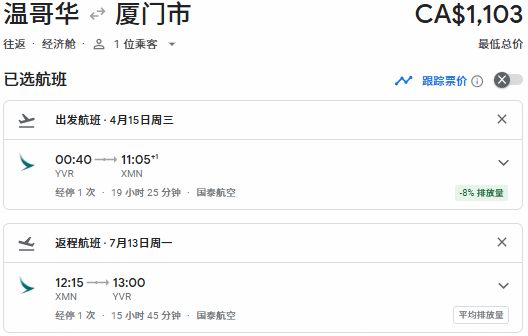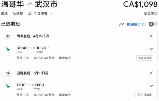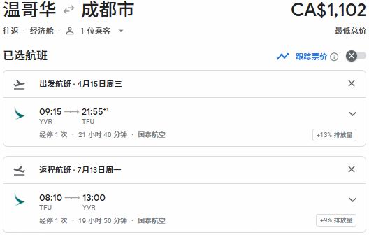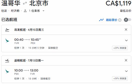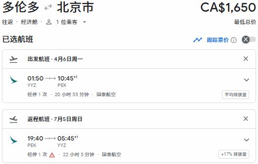 国泰限时特惠,加拿大往返中国各地、东南亚机票$1051起!