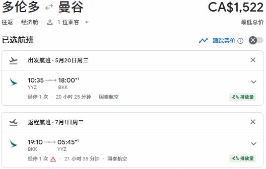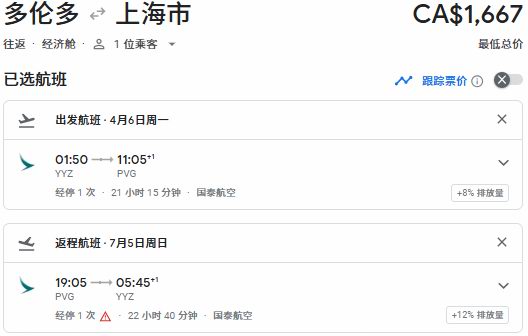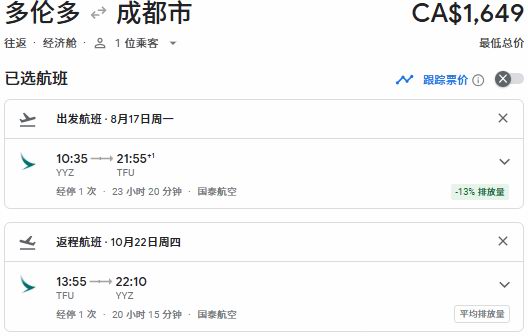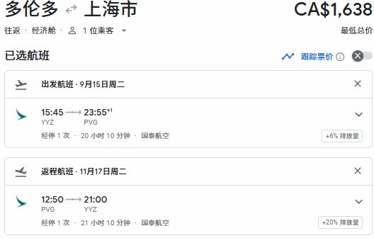 国泰限时特惠,加拿大往返中国各地、东南亚机票51起!