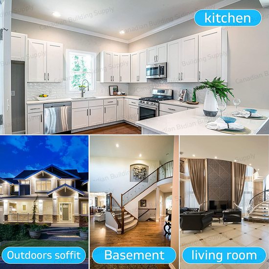 通过ETL、UL、能源之星和潮湿等级认证,符合CSA标准,采用新一代LED芯片,拥有更高亮度和更低能耗,节能高达88%,840流明亮度,相当于75瓦普通灯泡亮度,能耗仅9瓦,兼容大多数调光器,亮度可在5%-100%调节,具有3种色温(3000K、4000K、5000K)。采用IC等级的外壳,使用安全,没有过热的风险,只需2英寸的天花板空间即可完成安装。