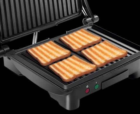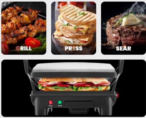 这款 4 片装帕尼尼烤盘/三明治机主打“一机多用+省空间”:不粘烤盘无需额外喷油即可压出酥脆帕尼尼,180° 可展开当接触式烤炉,煎烤汉堡、牛排、蔬菜等都适用;浮动铰链可自动适配食物厚薄,封闭状态一次可做 4 份三明治或 2 个大帕尼尼;机身小巧适合小厨房、宿舍、办公室甚至旅行携带;清洁方面有倾斜防滑底座导油到后部排水口,搭配不粘涂层和可拆卸滴油盘更好打理;功率 1000W/120V,通过 UL 认证并提供 1 年质保。