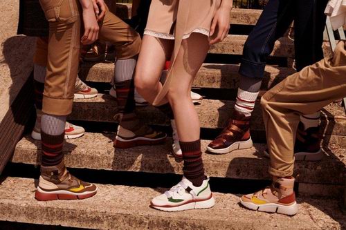 一如鞋面上的网状图案由传统鞋带演变而来,Sonnie 缓冲鞋底的镶板表面亦标志着运动与活力,寓意着传统运动鞋的全新改革。跨越规则与传统,创意总监 Natacha Ramsay-Levi 向当代视野发出信号。无论是低帮还是高帮,纯净的白色或是充满生机的鲜明色块,Sonnie 都将自信和率性的时尚态度尽情展现,强化了 Chloé 惯有的优雅魅力,并为之添彩。这一 “Sonnie” 版本采用枫叶粉色棉质混纺与小牛皮于意大利制成,并点缀着黄色和棕色的绒面革边饰,波浪状的灰白橡胶中底以跑步鞋为灵感。搭扣踝带下隐藏的松紧拼接让你轻松自如地套穿,这款鞋是Chloe的第一款运动鞋,杨幂、何穗和唐嫣等明星都上身了!!