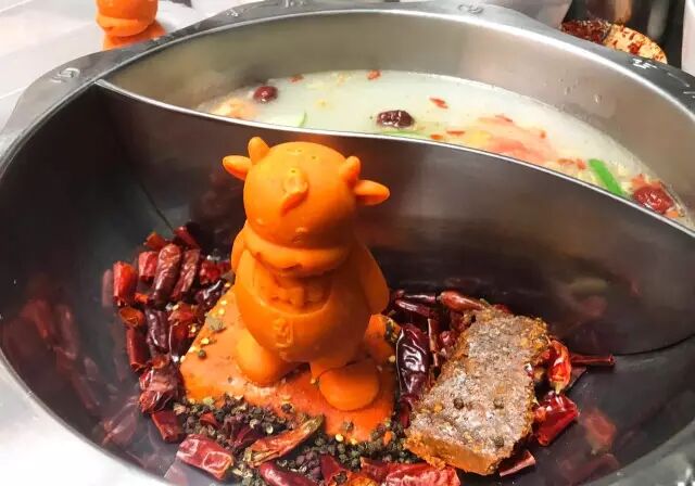 - 中间还在沸腾的格子里就可以开始烫食毛肚、鸭肠、鹅肠、猪黄喉等鲜菜了