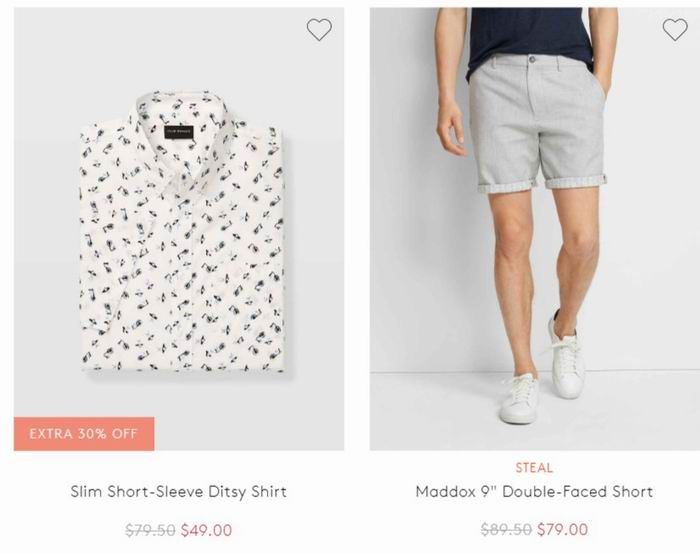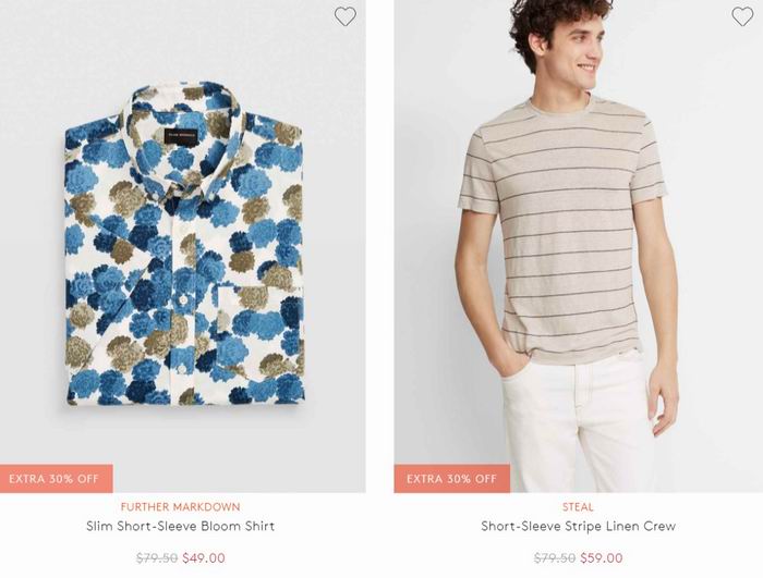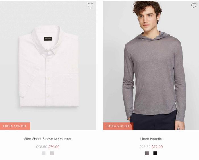 Club Monaco网店销售,男士折扣区衬衣、短裤 额外7折,无需折扣码,加入购物车自动显示!满150加元包邮需使用折扣码:FREESHIP ,点击进入订购页面 。
