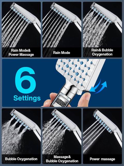 •六种喷雾模式:通过旋转手柄可选择 6 种不同喷雾模式,满足不同淋浴需求,舒缓身心疲劳。