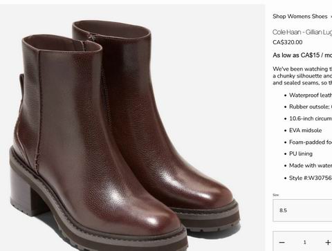 手慢无!Cole Haan 女式 Gillian Lug 粗跟踝靴 99.41加元(原价 320加元,7码)