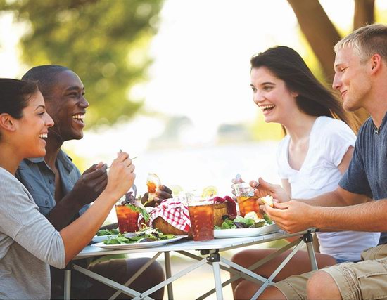 这款折叠桌采用坚固的钢制框架,超便携设计,轻巧易拿,配备便携包,折叠后可装入大多数汽车的后备箱,适合家庭户外野餐使用。