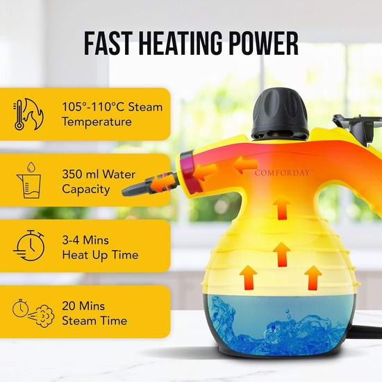 历史新低!Comfortay 手持式多功能加压蒸汽清洁机4.3折 24.47加元!