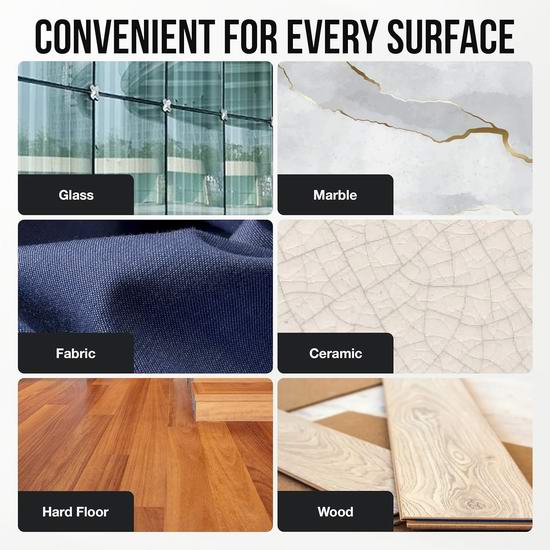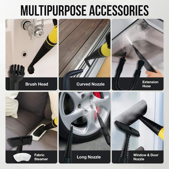 具有1050瓦蒸汽功率,仅需3-4分钟即可加热至105°C,提供长达20分钟的持续蒸汽。安全环保清洁,不产生有害气体或残留物。内置安全锁和瓶盖,使用时提供额外保护。套装包括加长喷嘴、带刷子的喷杯、弯喷嘴、漏斗、量杯、门窗喷杯、毛巾套、刷盘和长喷杯,满足您进行细致的多表面清洁任务所需的一切。适合清洁瓷砖、花岗岩、大理石、复合地板、硬木地板、陶瓷和乙烯基等密封表面。