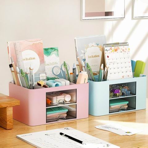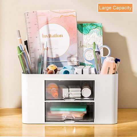 采用优质环保ABS塑料制成,结构包含4个开放式隔层和2个透明抽屉,能分类收纳化妆品、文具、办公用品等多种小物件。它尺寸适中,设计简约优雅,可有效节省桌面空间,帮助保持梳妆台、书桌或办公室的整洁有序,兼顾实用性与美观。