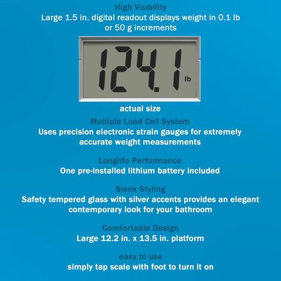 这款钢化玻璃体重秤外形美观大方,读数清晰,使用简便,性能可靠,最大承重高达182公斤。高强度钢化安全玻璃和多称重传感器技术,确保长期精准称重。