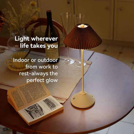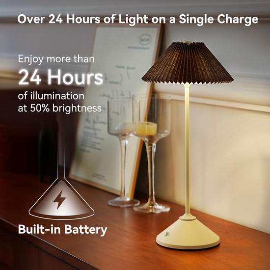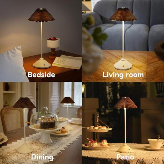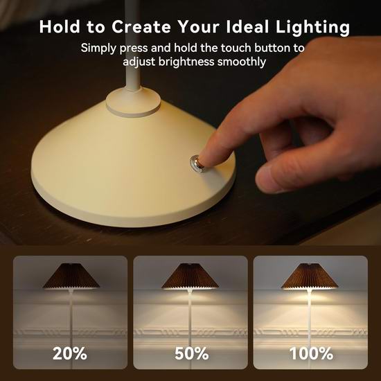 这款LED台灯采用优雅时尚的设计,配备高品质布艺灯罩,搭配哑光金属质感的底座和灯身,融合了复古魅力与现代优雅。不仅是一盏灯,更是床头柜、书桌或餐桌旁的一件精美装饰品,为您的房间增添温馨时尚的气息。具有三种色温 只需轻轻一按即可控制灯光。轻触即可开关灯,并在暖光、自然光和冷光之间切换。长按可无级调节亮度(10%到100%),适合阅读、营造氛围或作为床头柜上的柔和照明。内置可充电电池,充满电后可持续使用6至36小时。