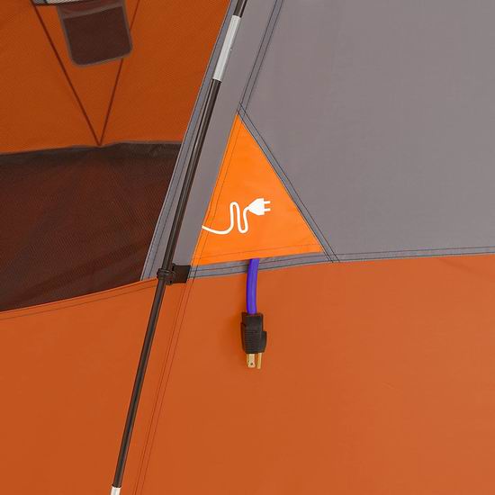 此款帐篷采用独家H2O Block技术+可调节接地通风口,在防风雨的同时,保证帐篷的空气流通,搭配PU涂层处理防水篷面,玻璃纤维杆结构,接缝采用倒缝技术,隔绝雨水和湿气,配备电线接入口,中心高度72英寸(1.83米),可容纳9人,足够放下3个大号床垫。
