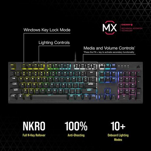CORSAIR K60 RGB PRO机械游戏键盘采用经久耐用的拉丝铝框架和CHERRY MV机械按键开关,每个按键都可以透出栩栩如生的RGB背光,兼顾时尚与内涵。轴体按压行程从此前标准的4毫米减少到3.2毫米,寿命依然达到了5000万次,为保证可靠性,MX Low Profile RGB加入了Gold-Crosspoint技术,保证机械轴的高可靠性、耐腐蚀性以及自洁性。CHERRY MX Low Profile RGB半透明的轴体能将发光二极管的灯光透出打造键盘灯效,外壳设计经过优化确保键帽发光均匀性,支持1680万色的RGB光谱。