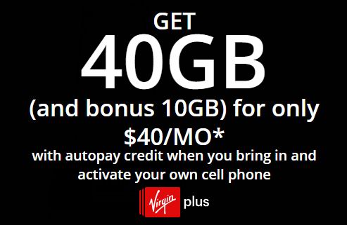 自带手机,40GB+10GB流量套餐仅需40加元;
