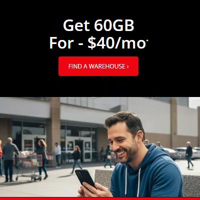 自带手机,60GB流量套餐仅需40加元;