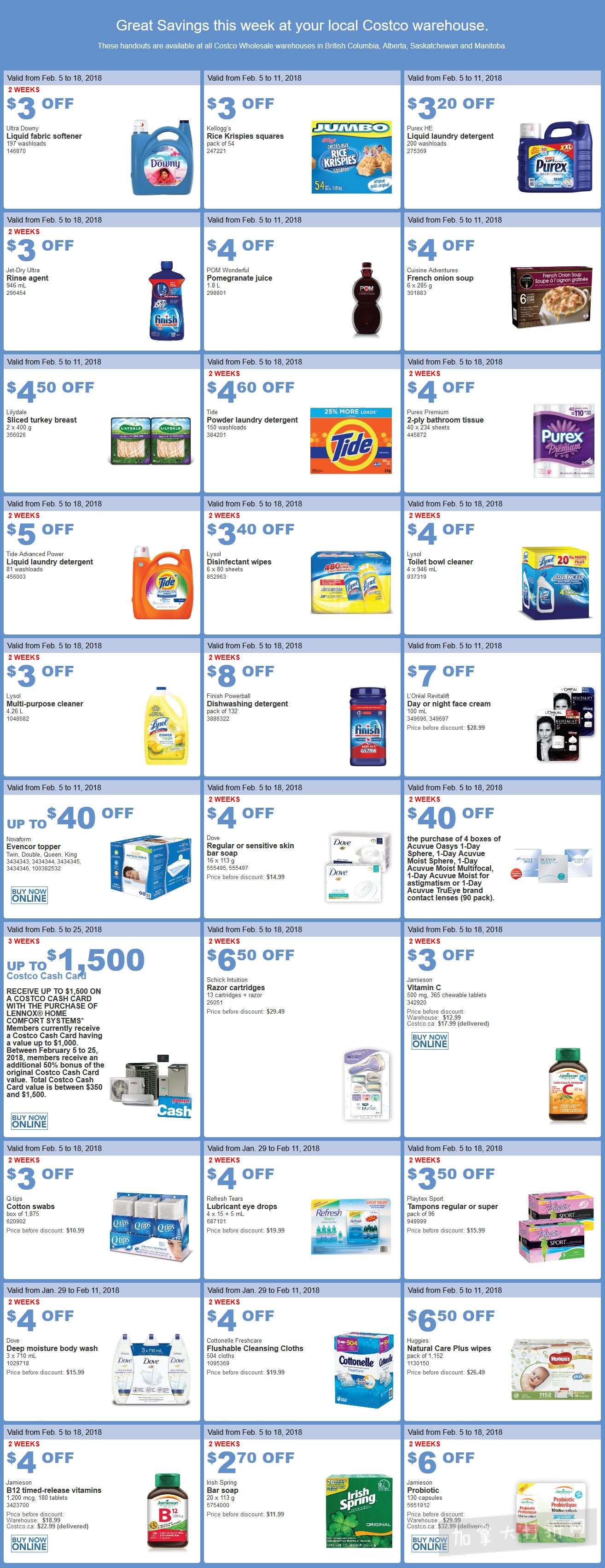 本组图于2月5日在多伦多Markham(Woodbine)店内拍摄,除常规减价促销外,价格以.97及.00结尾为清仓价,以.49及.79结尾为厂家促销价。拍摄的折扣(非清仓品)适用于加东省份的Costco店,加西及中部省份可能有部分不同。
