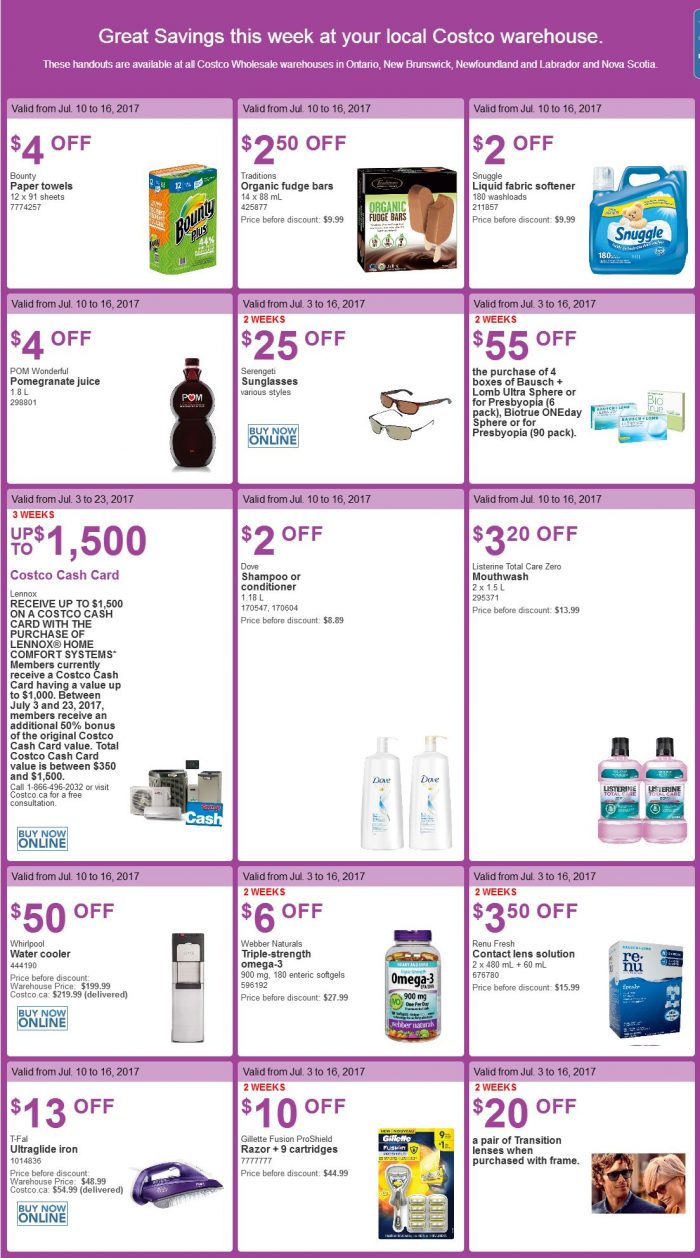 本组图于7月10日在多伦多Markham(Woodbine)店内拍摄,除常规减价促销外,价格以.97及.00结尾为清仓价,以.49及.79结尾为厂家促销价。拍摄的折扣(非清仓品)适用于加东省份的Costco店,加西及中部省份可能有部分不同。