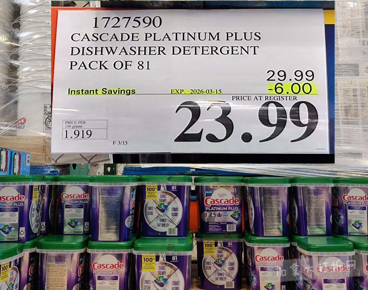 本组图于3月2日在多伦多Markham(Woodbine)店内拍摄,除常规减价促销外,价格以.97及.00结尾为清仓价。拍摄的折扣适用于加东省份的Costco店。