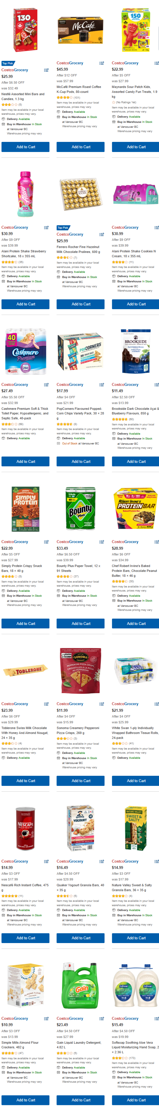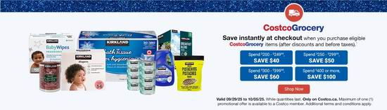 Costco网店销售,10月5日前,在活动页面内购买食品、日用杂货等(仅限标注有“Costco Grocery”字样商品),