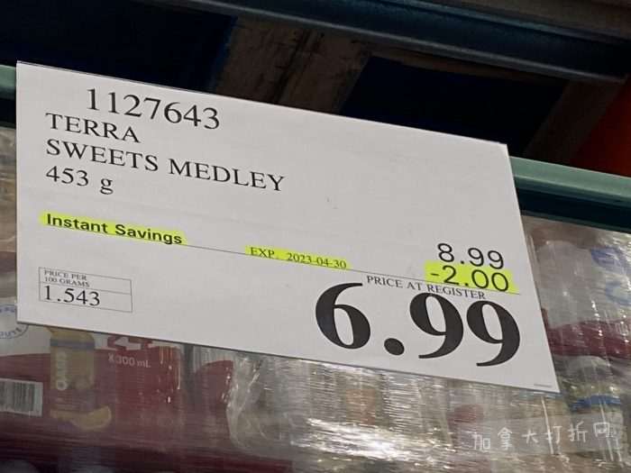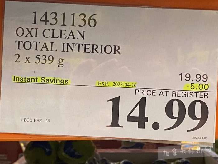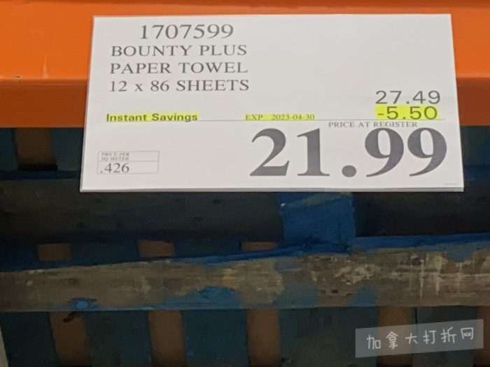 本组图于4月3日在温哥华Richmond店内拍摄,除常规减价促销外,价格以.97及.00结尾为清仓价。拍摄的折扣适用于加西及中部省份的Costco店。