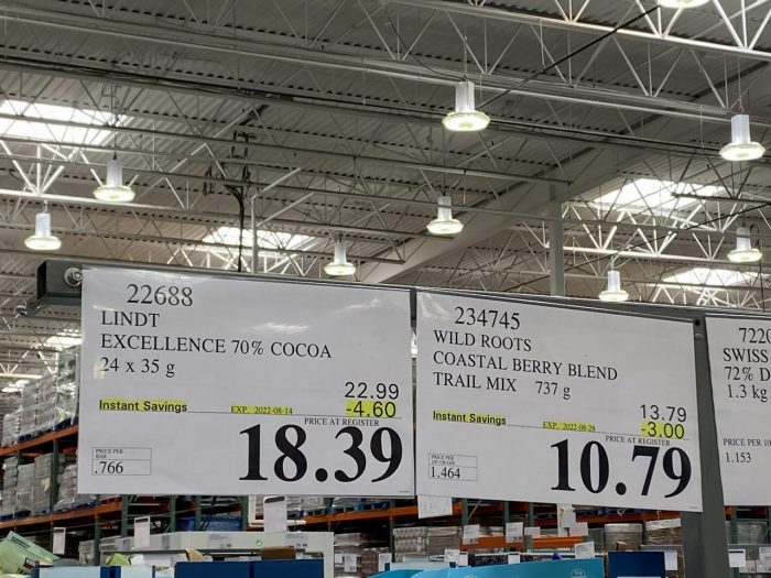 本组图于8月8日在温哥华Richmond店内拍摄,除常规减价促销外,价格以.97及.00结尾为清仓价。拍摄的折扣适用于加西及中部省份的Costco店。