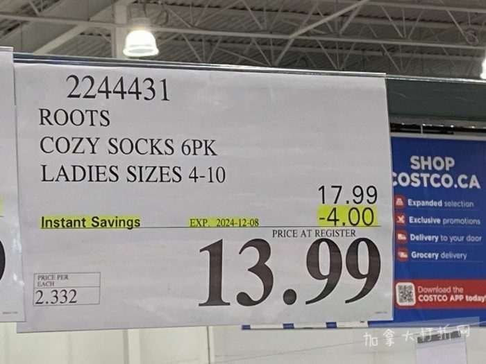 本组图于12月2日在温哥华Richmond店内拍摄,除常规减价促销外,价格以.97及.00结尾为清仓价。拍摄的折扣适用于加西及中部省份的Costco店。
