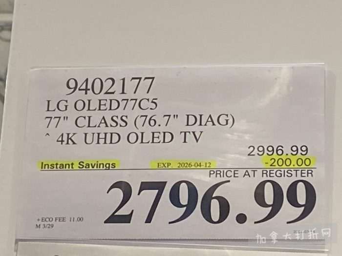 本组图于3月23日在温哥华Richmond店内拍摄,除常规减价促销外,价格以.97及.00结尾为清仓价。拍摄的折扣适用于加西及中部省份的Costco店。