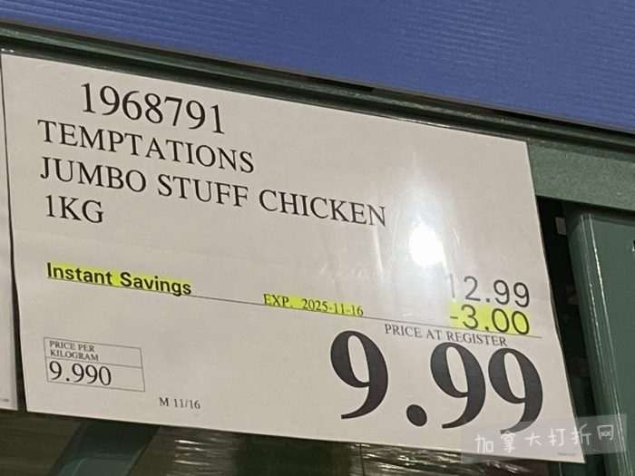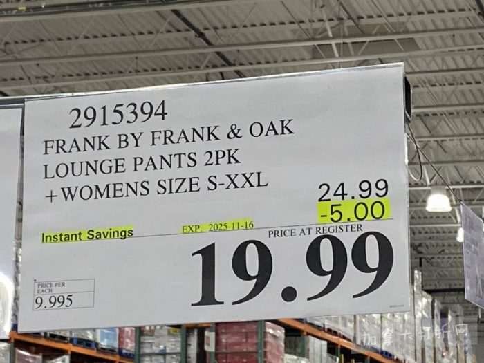 本组图于11月10日在温哥华Richmond店内拍摄,除常规减价促销外,价格以.97及.00结尾为清仓价。拍摄的折扣适用于加西及中部省份的Costco店。