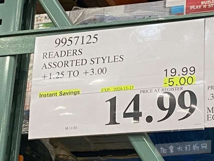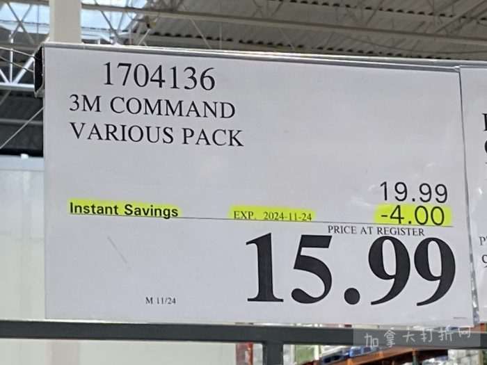 本组图于11月11日在温哥华Richmond店内拍摄,除常规减价促销外,价格以.97及.00结尾为清仓价。拍摄的折扣适用于加西及中部省份的Costco店。