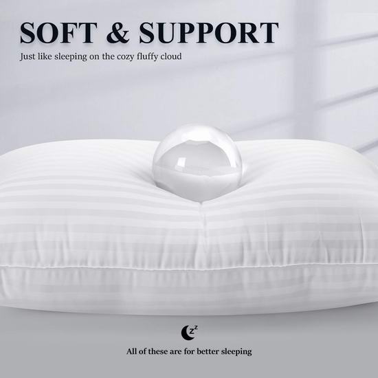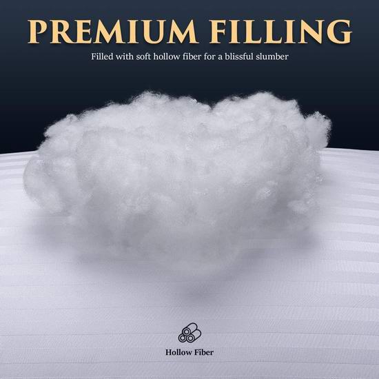 这款枕头在柔软度和支撑力之间实现了完美平衡。填充物为蓬松的中空纤维,为您带来如云朵般柔软舒适的睡眠体验,同时保持形状,不易变形。采用透气酒店级涤纶混纺枕套,提升了枕头的奢华外观和触感。枕头可机洗,低温烘干。