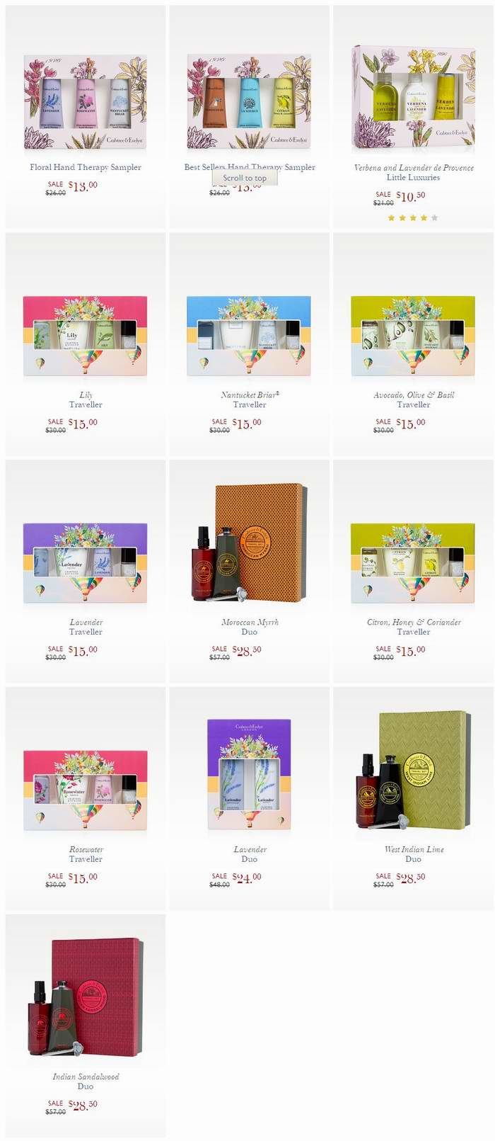 Crabtree & Evelyn网店销售,精选13款礼品套装全部5折 10.5元起特卖,精选4款护手霜5折12元特卖,另有手部护理产品全部7折,超值大包装产品及香皂买二送一,指甲油半价等多重折扣,今日内满25元包邮。点击进入订购页面。