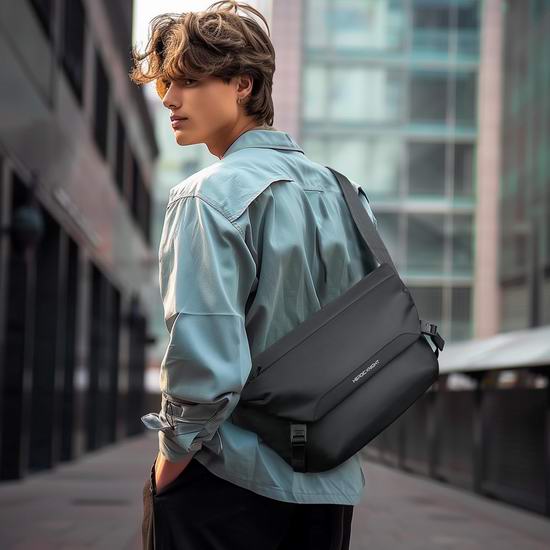 这款单肩包采用醒目的优质黑色作为主色调,将现代时尚理念融入经典复古邮差包设计,更好地体现您的风格和个性。内外均有充足的口袋,主隔层设有专门的平板电脑收纳区,可容纳最大 11.5 英寸的平板电脑,内部空间宽敞,可轻松收纳手机、钱包、数据线配件和钥匙扣。隔层配有多条松紧带,方便收纳数据线等物品。采用防水尼龙面料和光滑的金属拉链制成,确保您的物品保持干燥和安全,无论您是上下班还是在意外天气下进行户外探险。外形尺寸为38 x 24 x 15厘米。