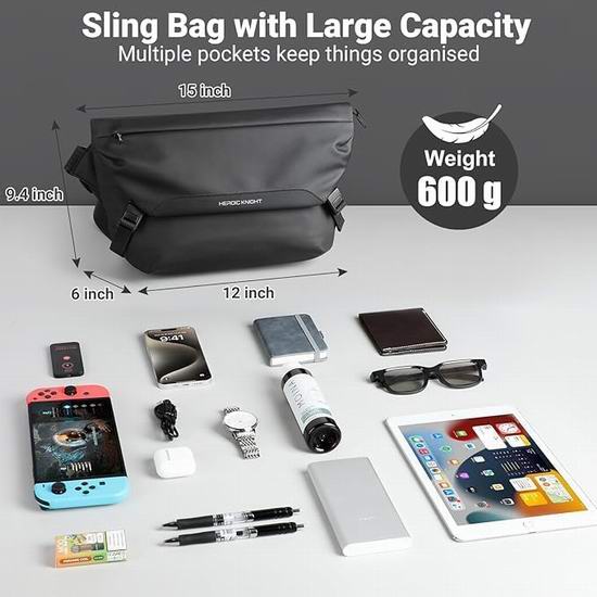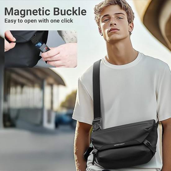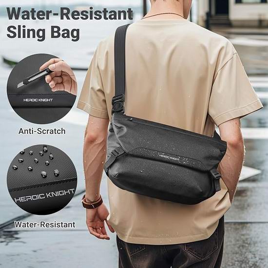 超级白菜!历史新低!HEROIC KNIGHT 黑色防水 经典复古邮差包2折 9.99加元清仓!