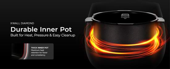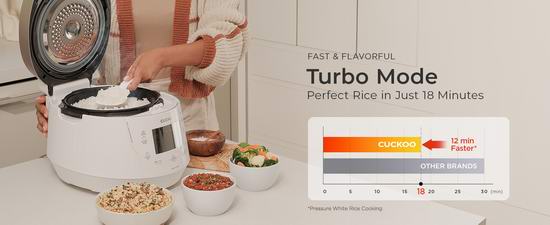韩国福库CRP-P1009SW 10杯量智能压力电饭煲,支持英语、韩语和中文语音引导,搭载LED显示屏,触摸控制,预设12种烹饪程序,包括压力烹饪、GABA/糙米、白米、粥、锅巴、蒸、加热等,可轻松制作各种不同的饭菜。采用模糊逻辑技术,可智能检测并自动调整温度和压力,确保每次都能煮出完美米饭。预设定时器和自动蒸汽清洁功能让使用更轻松,节省时间和精力。其安全蒸汽释放系统轻柔安静地释放压力,同时内置过热警报,确保使用过程中的安全性。不锈钢 X-Wall 内锅,采用优质不粘金刚石涂层,旨在实现最佳热量分布,耐刮擦,经久耐用且易于清洁。
